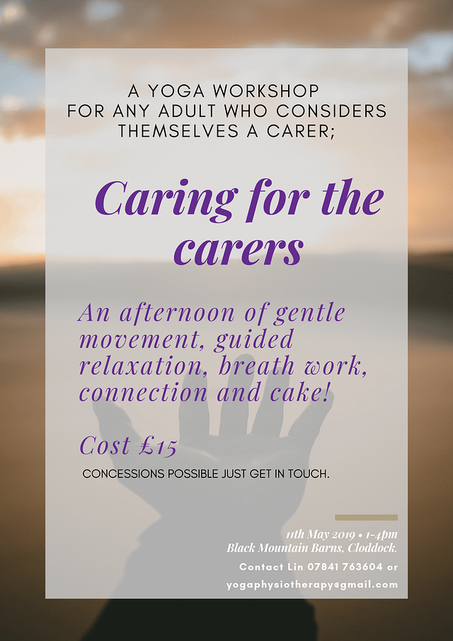 This afternoon workshop is for any adult who considers themselves a carer. It will include gentle Yoga based movement, breathing practices and guided relaxation. There will also be time for a cuppa, a chat and cake!